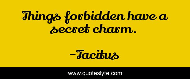 "Tacitus Quotes." Quoteslyfe.com, 2025. Sun. 07 Dec. 2025. <https://www.quoteslyfe.com/quote/Things-forbidden-have-a-secret-charm-277342>.