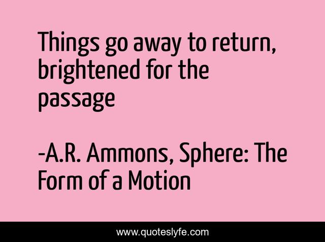"A.R. Ammons, Sphere: The Form of a Motion Quotes." Quoteslyfe.com, 2025. Fri. 05 Dec. 2025. <https://www.quoteslyfe.com/quote/Things-go-away-to-return-brightened-for-19465>.