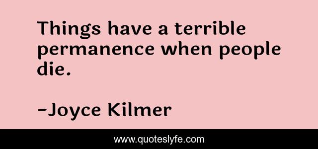 "Joyce Kilmer Quotes." Quoteslyfe.com, 2025. Sat. 06 Dec. 2025. <https://www.quoteslyfe.com/quote/Things-have-a-terrible-permanence-when-people-262915>.