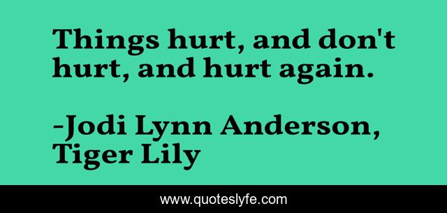This page presents the quote "Things hurt, and don't hurt, and hurt again.". Author of this quote is Jodi Lynn Anderson, Tiger Lily. This quote is about retellings, love, hurt, tiger-lily, peter-pan, affection,.