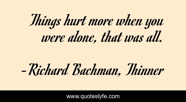 "Richard Bachman, Thinner Quotes." Quoteslyfe.com, 2025. Sat. 06 Dec. 2025. <https://www.quoteslyfe.com/quote/Things-hurt-more-when-you-were-alone-192791>.