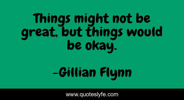 This page presents the quote "Things might not be great, but things would be okay.". Author of this quote is Gillian Flynn. This quote is about great, okay, circumstances,.