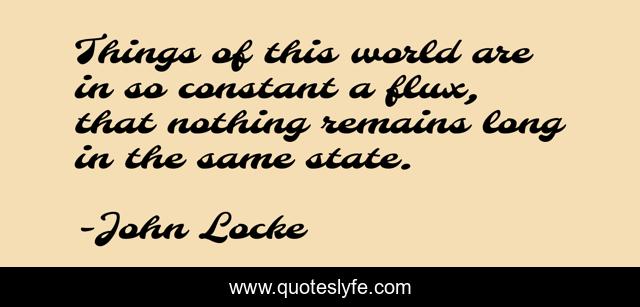 This page presents the quote "Things of this world are in so constant a flux, that nothing remains long in the same state.". Author of this quote is John Locke. This quote is about nothing, world, long,.