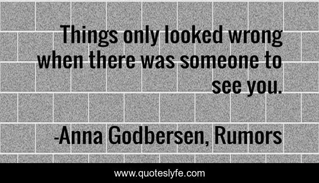 This page presents the quote "Things only looked wrong when there was someone to see you.". Author of this quote is Anna Godbersen, Rumors. This quote is about conscience, wrongdoing,.