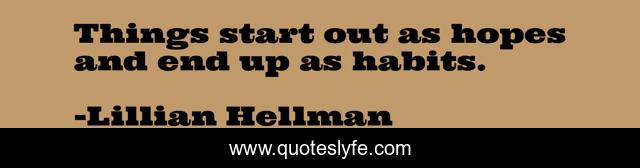 This page presents the quote "Things start out as hopes and end up as habits.". Author of this quote is Lillian Hellman. This quote is about start, habits, end,.