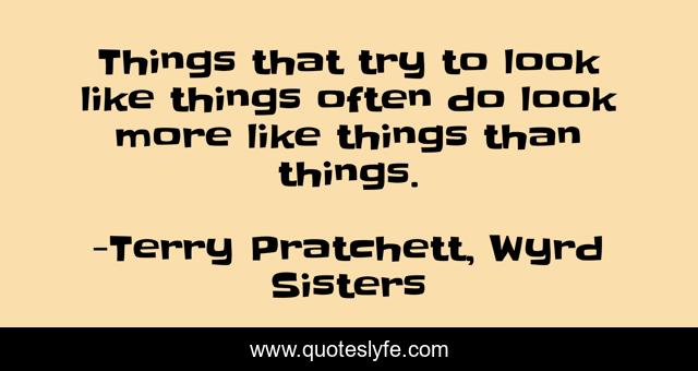 "Terry Pratchett, Wyrd Sisters Quotes." Quoteslyfe.com, 2025. Fri. 05 Dec. 2025. <https://www.quoteslyfe.com/quote/Things-that-try-to-look-like-things-100384>.
