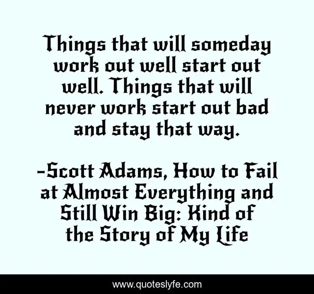 "Scott Adams, How to Fail at Almost Everything and Still Win Big: Kind of the Story of My Life Quotes." Quoteslyfe.com, 2025. Fri. 05 Dec. 2025. <https://www.quoteslyfe.com/quote/Things-that-will-someday-work-out-well-144855>.