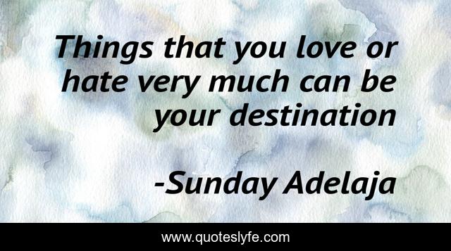 This page presents the quote "Things that you love or hate very much can be your destination". Author of this quote is Sunday Adelaja. This quote is about life, love, things, destination, mission, calling, purpose, hate, affection,.