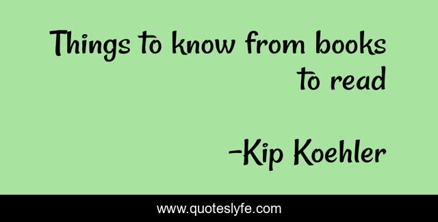 "Kip Koehler Quotes." Quoteslyfe.com, 2025. Fri. 05 Dec. 2025. <https://www.quoteslyfe.com/quote/Things-to-know-from-books-to-read-175367>.