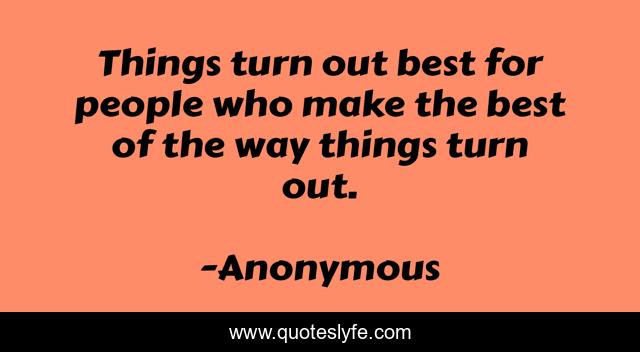 This page presents the quote "Things turn out best for people who make the best of the way things turn out.". Author of this quote is Anonymous. .