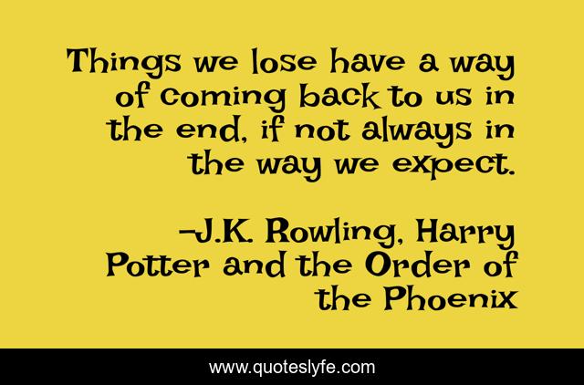 This page presents the quote "Things we lose have a way of coming back to us in the end, if not always in the way we expect.". Author of this quote is J.K. Rowling, Harry Potter and the Order of the Phoenix. This quote is about death, love, affection,.