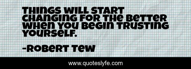 This page presents the quote "Things will start changing for the better when you begin trusting yourself.". Author of this quote is Robert Tew. This quote is about trusting, trust, growth, change, yourself,.