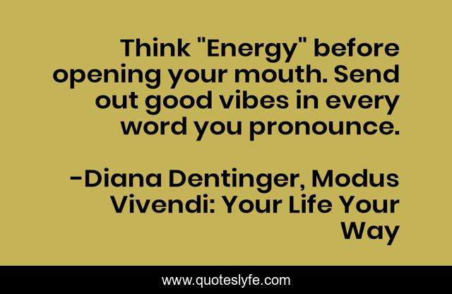 "Diana Dentinger, Modus Vivendi: Your Life Your Way Quotes." Quoteslyfe.com, 2025. Fri. 05 Dec. 2025. <https://www.quoteslyfe.com/quote/Think-Energy-before-opening-your-mouth-Send-14734>.