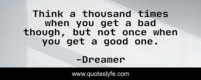 This page presents the quote "Think a thousand times when you get a bad though, but not once when you get a good one.". Author of this quote is Dreamer. This quote is about thought, good,.