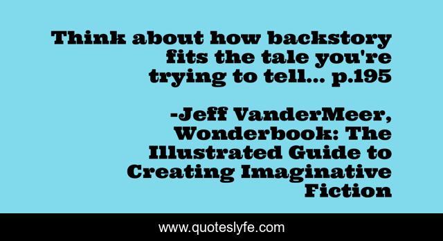 "Jeff VanderMeer, Wonderbook: The Illustrated Guide to Creating Imaginative Fiction Quotes." Quoteslyfe.com, 2025. Mon. 08 Dec. 2025. <https://www.quoteslyfe.com/quote/Think-about-how-backstory-fits-the-tale-173513>.
