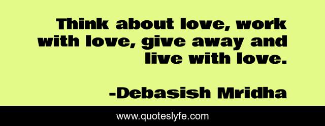 "Debasish Mridha Quotes." Quoteslyfe.com, 2025. Sun. 07 Dec. 2025. <https://www.quoteslyfe.com/quote/Think-about-love-work-with-love-give-69935>.