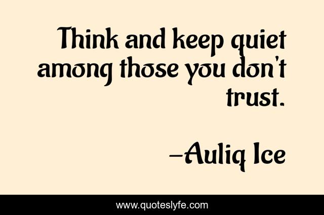 This page presents the quote "Think and keep quiet among those you don't trust.". Author of this quote is Auliq Ice. This quote is about trust, mistrust, wisdom,.