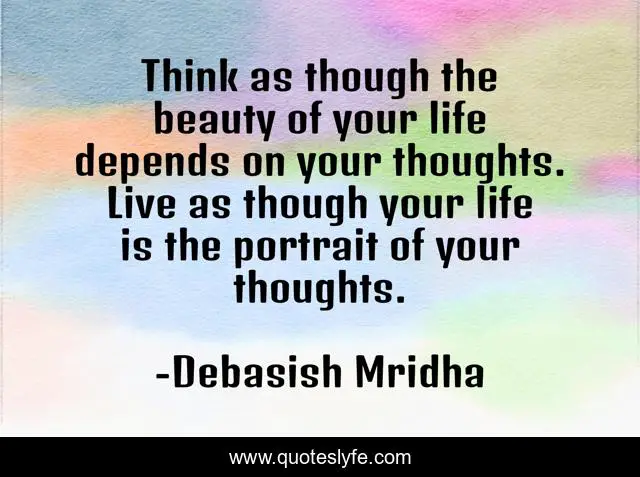 This page presents the quote "Think as though the beauty of your life depends on your thoughts. Live as though your life is the portrait of your thoughts.". Author of this quote is Debasish Mridha. This quote is about debasish-mridha, philosophy, life-depends-on-your-thoughts, quotes, inspirational, enthusiasm, beauty-of-life, debasish-mridha-m-d, thoughts,.