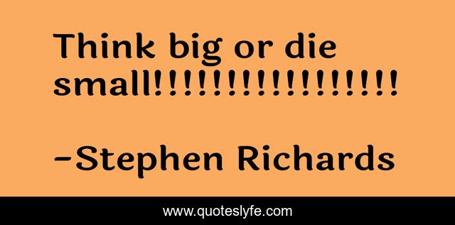 "Stephen Richards Quotes." Quoteslyfe.com, 2025. Sat. 06 Dec. 2025. <https://www.quoteslyfe.com/quote/Think-big-or-die-small-252424>.