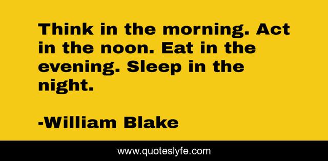 This page presents the quote "Think in the morning. Act in the noon. Eat in the evening. Sleep in the night.". Author of this quote is William Blake. This quote is about sleep, think, night,.