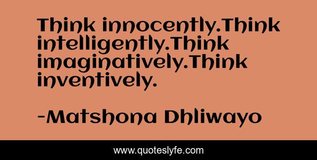 "Matshona Dhliwayo Quotes." Quoteslyfe.com, 2025. Sat. 06 Dec. 2025. <https://www.quoteslyfe.com/quote/Think-innocently-Think-intelligently-Think-imaginatively-Think-234222>.