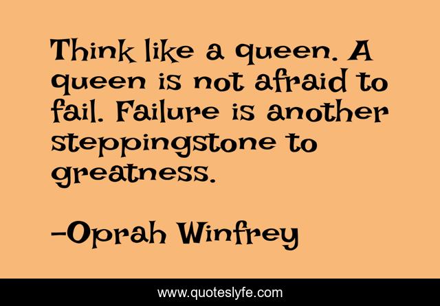 This page presents the quote "Think like a queen. A queen is not afraid to fail. Failure is another steppingstone to greatness.". Author of this quote is Oprah Winfrey. This quote is about women, queen, greatness,.