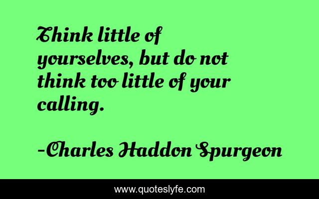 This page presents the quote "Think little of yourselves, but do not think too little of your calling.". Author of this quote is Charles Haddon Spurgeon. This quote is about job, vocation, contentment,.
