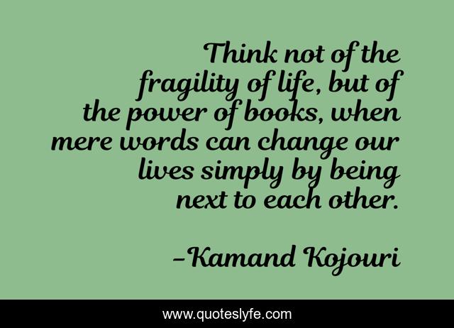 Think not of the fragility of life, but of the power of books, when mere words can change our lives simply by being next to each other.