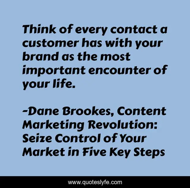 "Dane Brookes, Content Marketing Revolution: Seize Control of Your Market in Five Key Steps Quotes." Quoteslyfe.com, 2025. Sat. 06 Dec. 2025. <https://www.quoteslyfe.com/quote/Think-of-every-contact-a-customer-has-235620>.
