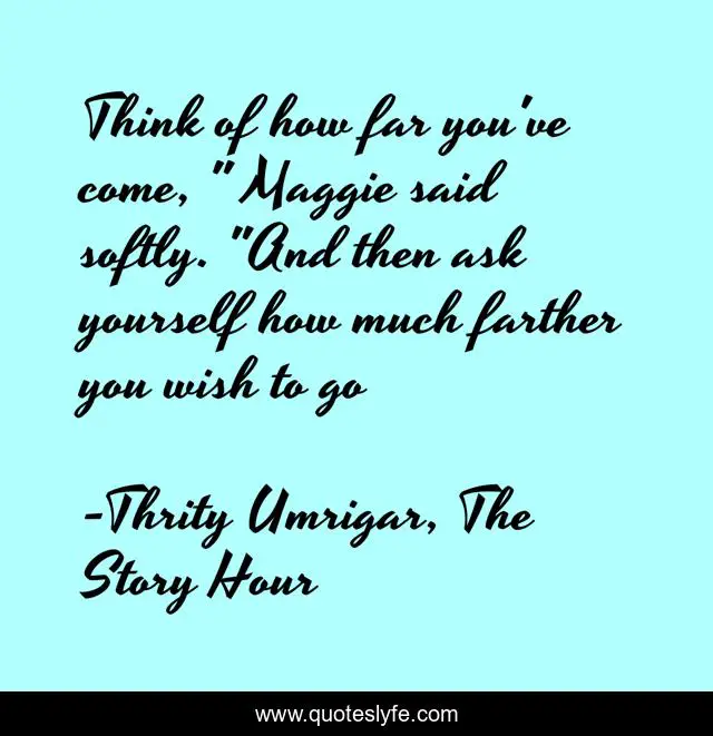 "Thrity Umrigar, The Story Hour Quotes." Quoteslyfe.com, 2025. Fri. 05 Dec. 2025. <https://www.quoteslyfe.com/quote/Think-of-how-far-you-ve-come-141166>.