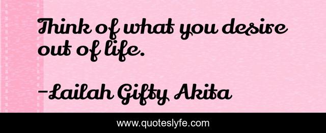 This page presents the quote "Think of what you desire out of life.". Author of this quote is Lailah Gifty Akita. This quote is about inspiring, desires, thinking, life, motivation, self-realization, wishes, life-philosophy,.