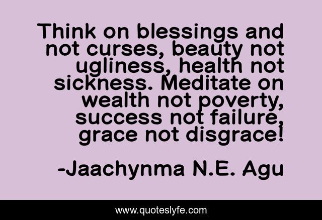 "Jaachynma N.E. Agu Quotes." Quoteslyfe.com, 2025. Sat. 06 Dec. 2025. <https://www.quoteslyfe.com/quote/Think-on-blessings-and-not-curses-beauty-88890>.