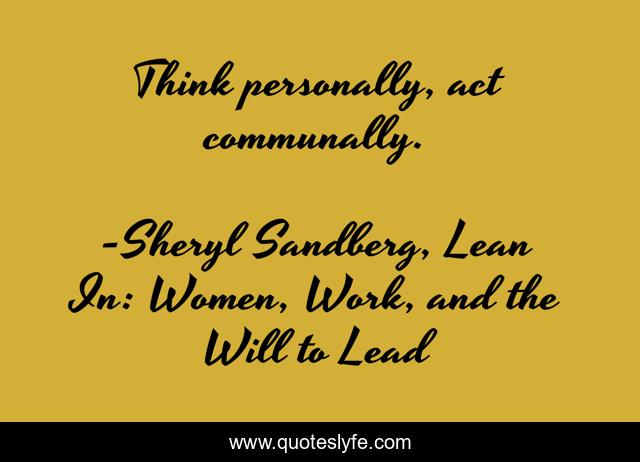 "Sheryl Sandberg, Lean In: Women, Work, and the Will to Lead Quotes." Quoteslyfe.com, 2025. Mon. 08 Dec. 2025. <https://www.quoteslyfe.com/quote/Think-personally-act-communally-181303>.
