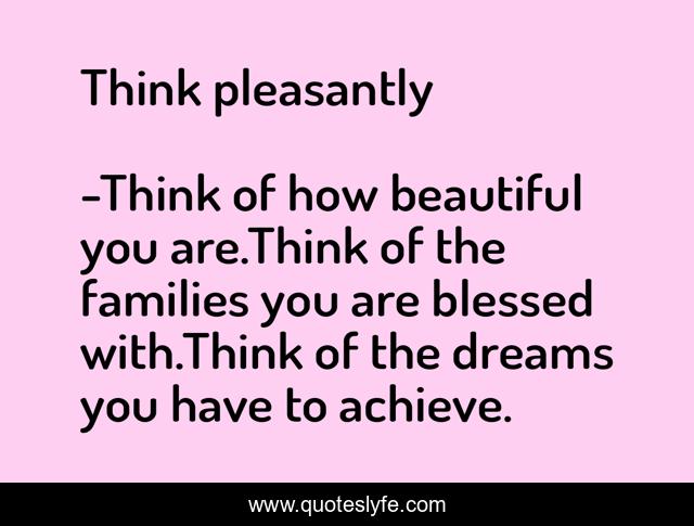 "Think of how beautiful you are.Think of the families you are blessed with.Think of the dreams you have to achieve. Quotes." Quoteslyfe.com, 2025. Sat. 06 Dec. 2025. <https://www.quoteslyfe.com/quote/Think-pleasantly-109526>.