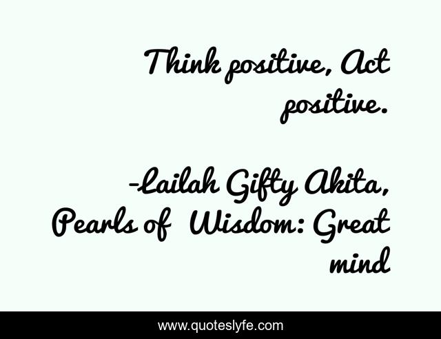 "Lailah Gifty Akita, Pearls of Wisdom: Great mind Quotes." Quoteslyfe.com, 2025. Sat. 06 Dec. 2025. <https://www.quoteslyfe.com/quote/Think-positive-Act-positive-95229>.