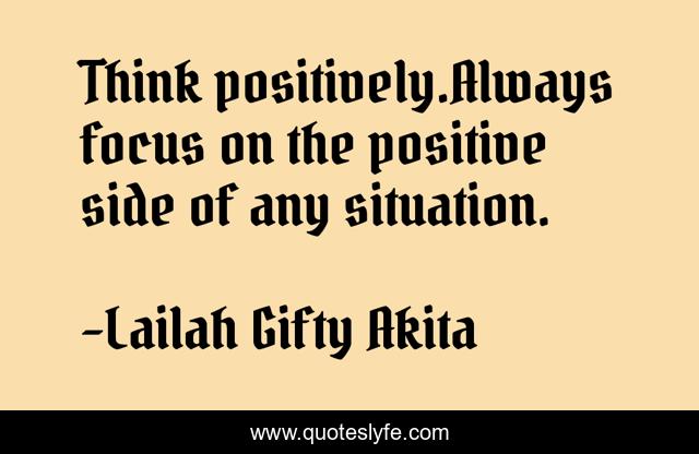 This page presents the quote "Think positively.Always focus on the positive side of any situation.". Author of this quote is Lailah Gifty Akita. .