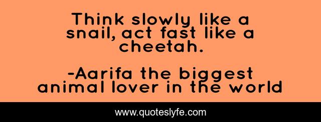 "Aarifa the biggest animal lover in the world Quotes." Quoteslyfe.com, 2025. Fri. 05 Dec. 2025. <https://www.quoteslyfe.com/quote/Think-slowly-like-a-snail-act-fast-228895>.