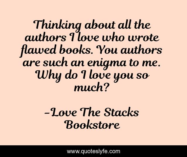 This page presents the quote "Thinking about all the authors I love who wrote flawed books. You authors are such an enigma to me. Why do I love you so much?". Author of this quote is Love The Stacks Bookstore. .