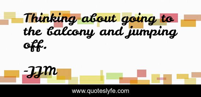 This page presents the quote "Thinking about going to the balcony and jumping off.". Author of this quote is JJM. This quote is about suicide, darkness, depressed, sad, dark, sadness, depression,.