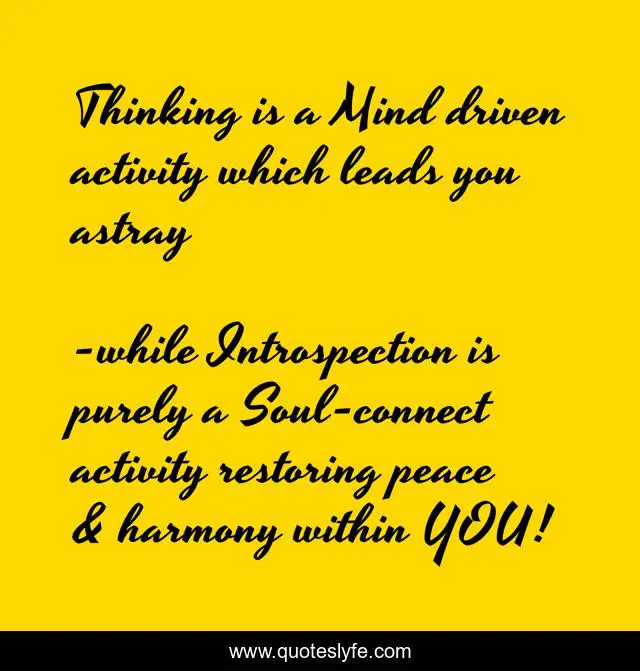 "while Introspection is purely a Soul-connect activity restoring peace & harmony within YOU! Quotes." Quoteslyfe.com, 2025. Fri. 05 Dec. 2025. <https://www.quoteslyfe.com/quote/Thinking-is-a-Mind-driven-activity-which-63015>.