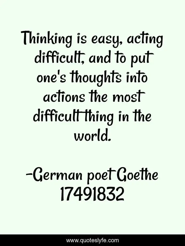 "German poet Goethe 17491832 Quotes." Quoteslyfe.com, 2025. Sat. 06 Dec. 2025. <https://www.quoteslyfe.com/quote/Thinking-is-easy-acting-difficult-and-to-246109>.