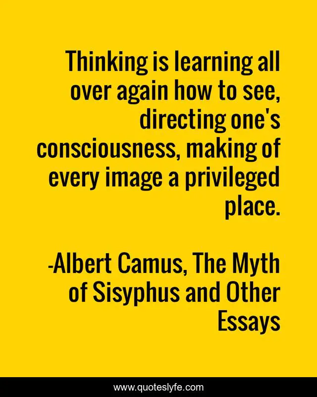 This page presents the quote "Thinking is learning all over again how to see, directing one's consciousness, making of every image a privileged place.". Author of this quote is Albert Camus, The Myth of Sisyphus and Other Essays. This quote is about thinking, thought, consciousness, the-myth-of-sisyphus,.