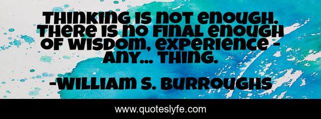 This page presents the quote "Thinking is not enough. There is no final enough of wisdom, experience - any... thing.". Author of this quote is William S. Burroughs. This quote is about thinking, enough, experience,.