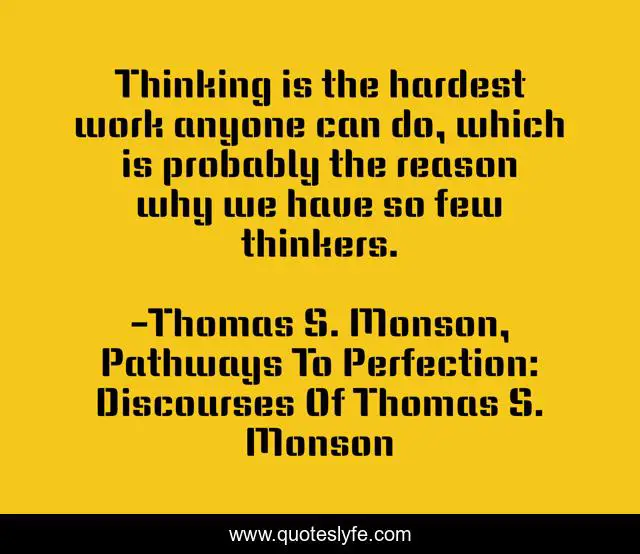 "Thomas S. Monson, Pathways To Perfection: Discourses Of Thomas S. Monson Quotes." Quoteslyfe.com, 2025. Sat. 06 Dec. 2025. <https://www.quoteslyfe.com/quote/Thinking-is-the-hardest-work-anyone-can-71785>.