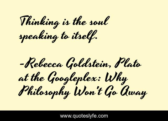 "Rebecca Goldstein, Plato at the Googleplex: Why Philosophy Won't Go Away Quotes." Quoteslyfe.com, 2025. Fri. 05 Dec. 2025. <https://www.quoteslyfe.com/quote/Thinking-is-the-soul-speaking-to-itself-163062>.