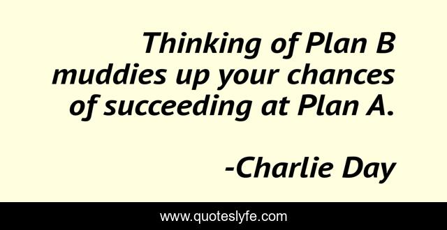 This page presents the quote "Thinking of Plan B muddies up your chances of succeeding at Plan A.". Author of this quote is Charlie Day. This quote is about thinking, plan, succeeding,.