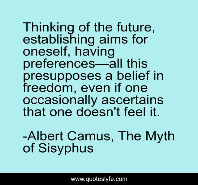 "Albert Camus, The Myth of Sisyphus Quotes." Quoteslyfe.com, 2025. Sat. 06 Dec. 2025. <https://www.quoteslyfe.com/quote/Thinking-of-the-future-establishing-aims-for-110323>.