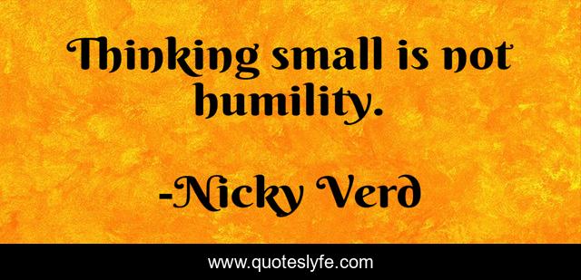 This page presents the quote "Thinking small is not humility.". Author of this quote is Nicky Verd. This quote is about motivation, positive-mind, purpose, inspirational, process-improvement, enthusiasm, quitting-on-yourself, mindset,.
