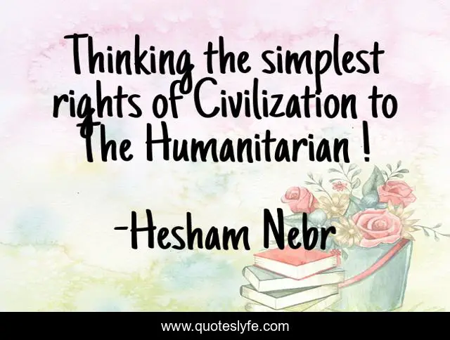 This page presents the quote "Thinking the simplest rights of Civilization to The Humanitarian !". Author of this quote is Hesham Nebr. This quote is about civilization, humanitarian,.