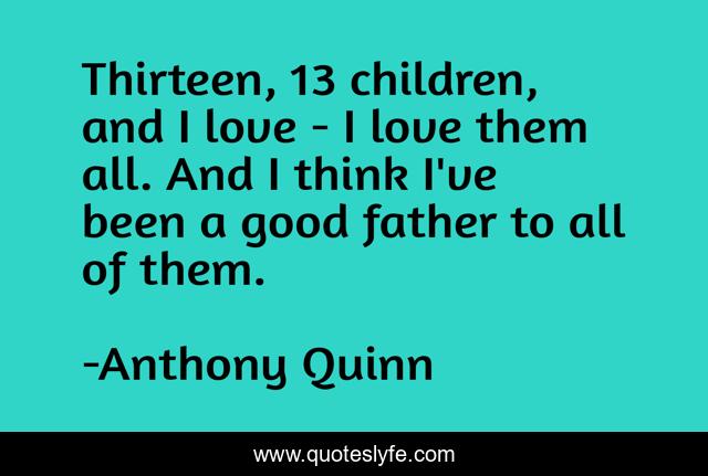 This page presents the quote "Thirteen, 13 children, and I love - I love them all. And I think I've been a good father to all of them.". Author of this quote is Anthony Quinn. This quote is about good, love, children, affection,.